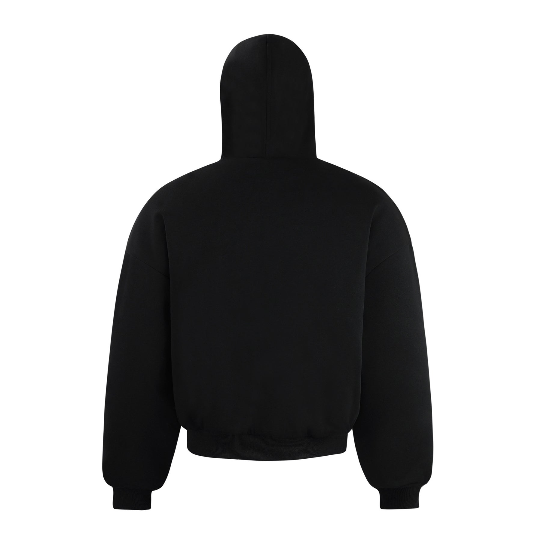 Short and wide cut patchwork embroidered cotton jacket with hooded cover